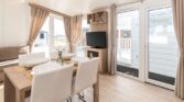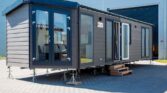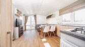 Découvrez le mobil-home LARK Ibiza 36m², une habitation alliant design original et fonctionnalité. Son mur pignon caractéristique apporte une sensation d’espace accru dans le séjour, tout en lui conférant une forme unique et stylisée.