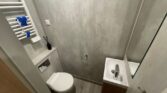 Une salle de bain avec sanitaires complets.